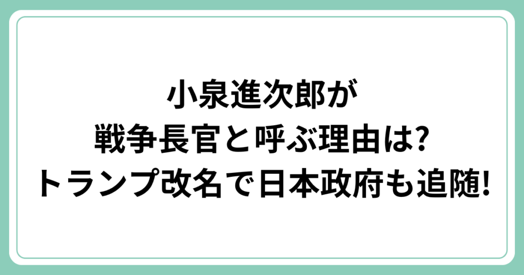 小泉進次郎が戦争長官と呼ぶ理由は?トランプ改名で日本政府も追随!