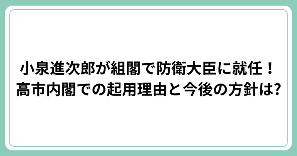 小泉進次郎が組閣で防衛大臣に就任!高市内閣での起用理由と今後の方針は?