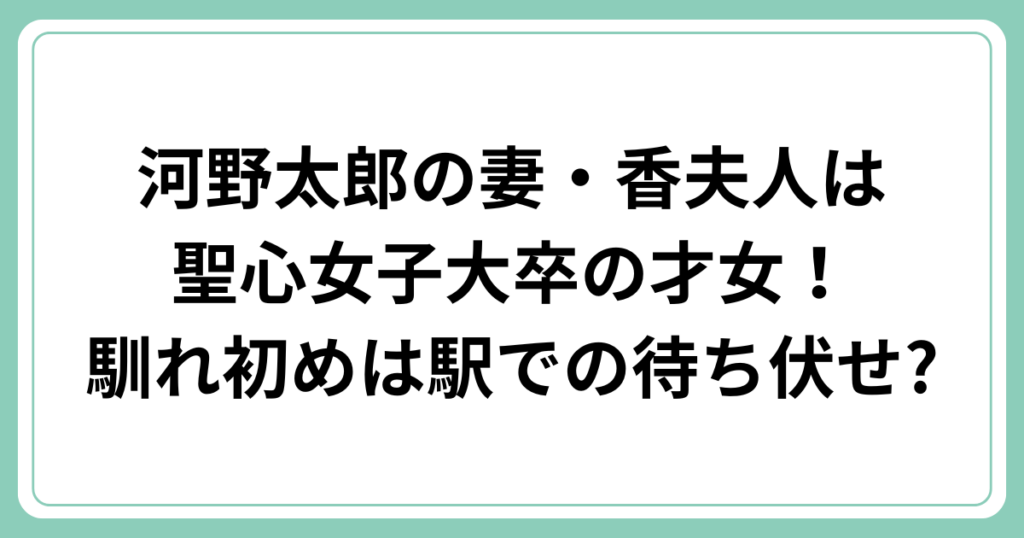 河野太郎の妻・香夫人は聖心女子大卒の才女!馴れ初めは駅での待ち伏せ?