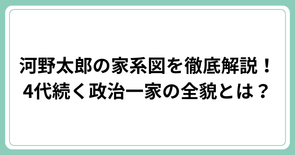 河野太郎の家系図を徹底解説!4代続く政治一家の全貌とは?