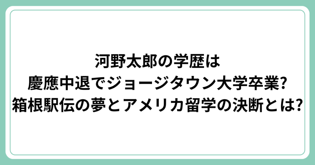 河野太郎の学歴は慶應中退でジョージタウン大学卒業?箱根駅伝の夢とアメリカ留学の決断とは?
