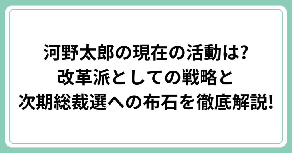 河野太郎の現在の活動は?改革派としての戦略と次期総裁選への布石を徹底解説!