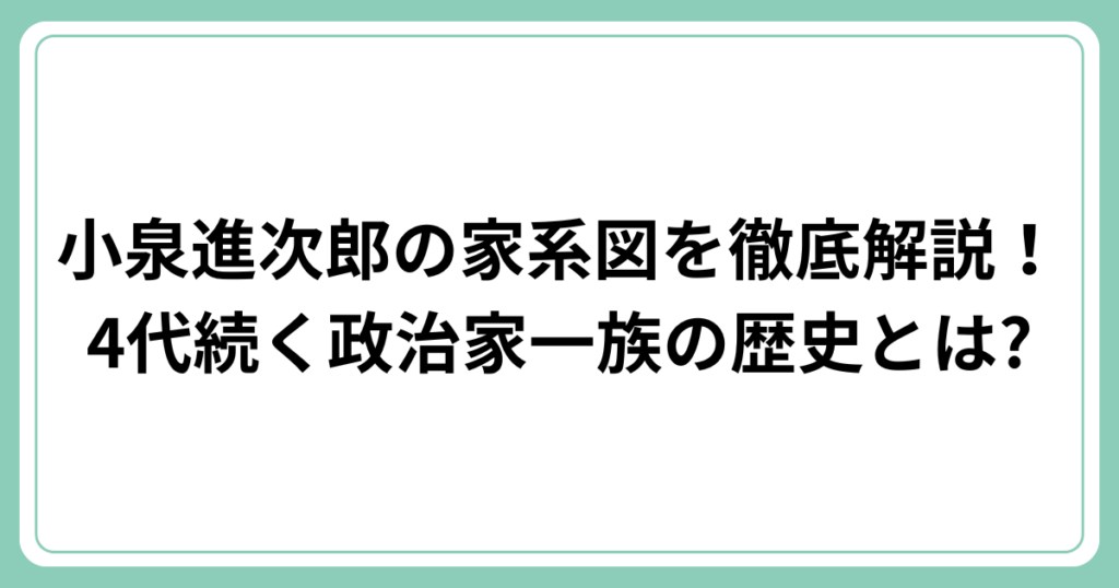 防衛大臣として活躍する小泉進次郎氏。 政治家一族として知られる小泉家ですが、その家系図はどのようになっているのでしょうか? この記事では、小泉進次郎氏の家系図を曽祖父の代から詳しく解説します。 4代にわたって続く政治家一族の歴史や、母方の家系... -