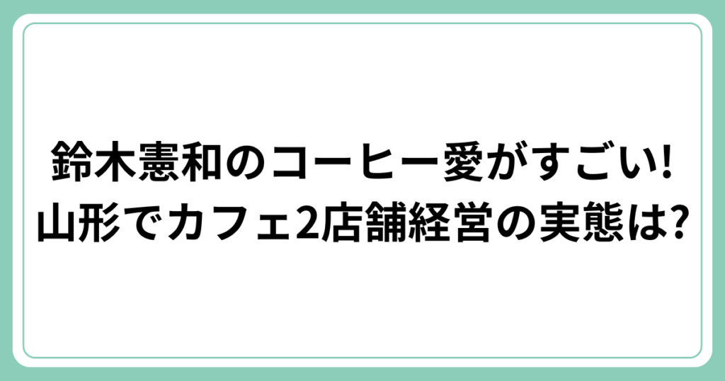 鈴木憲和のコーヒー愛がすごい!山形でカフェ2店舗経営の実態は?