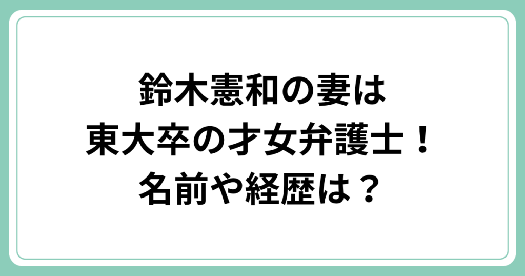 鈴木憲和の妻は東大卒の才女弁護士!名前や経歴は?