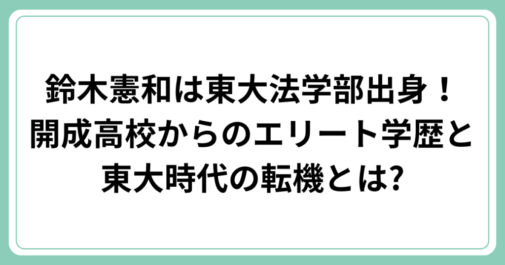 鈴木憲和は東大法学部出身!開成高校からのエリート学歴と東大時代の転機とは?