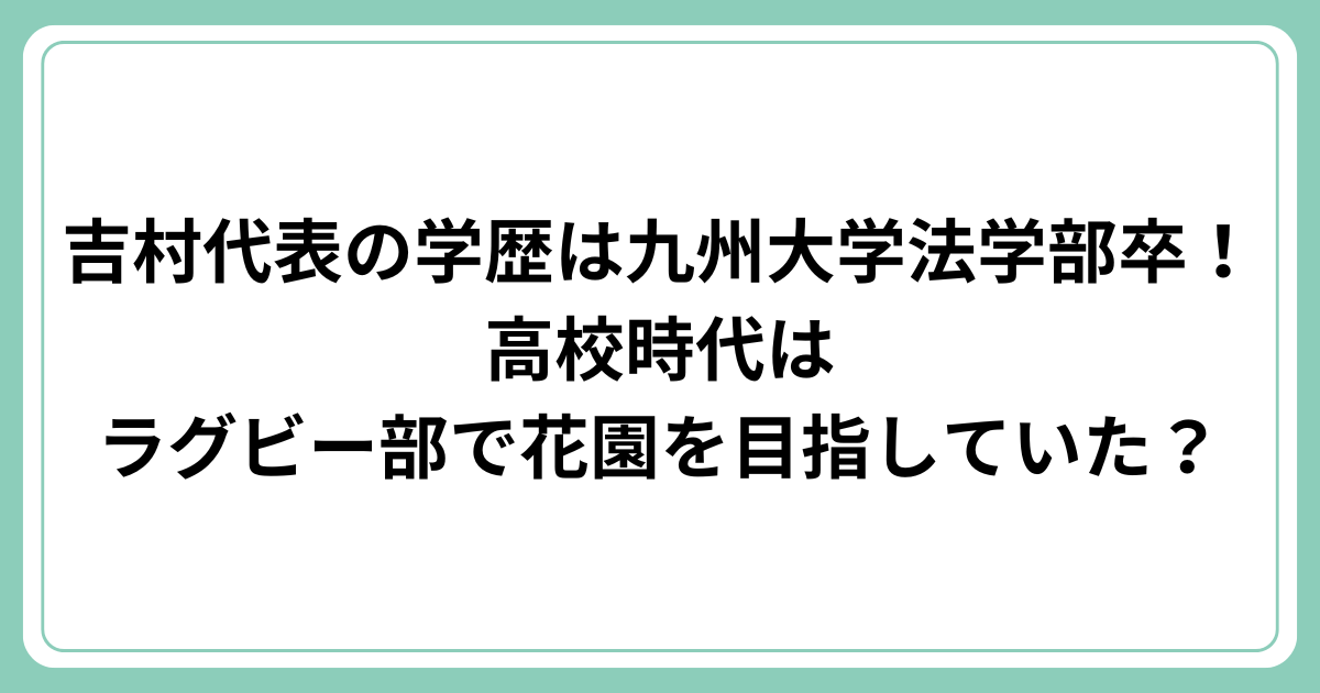 この記事では、吉村代表の小学校から大学までの学歴と、学生時代のエピソードについて詳しくご紹介します!